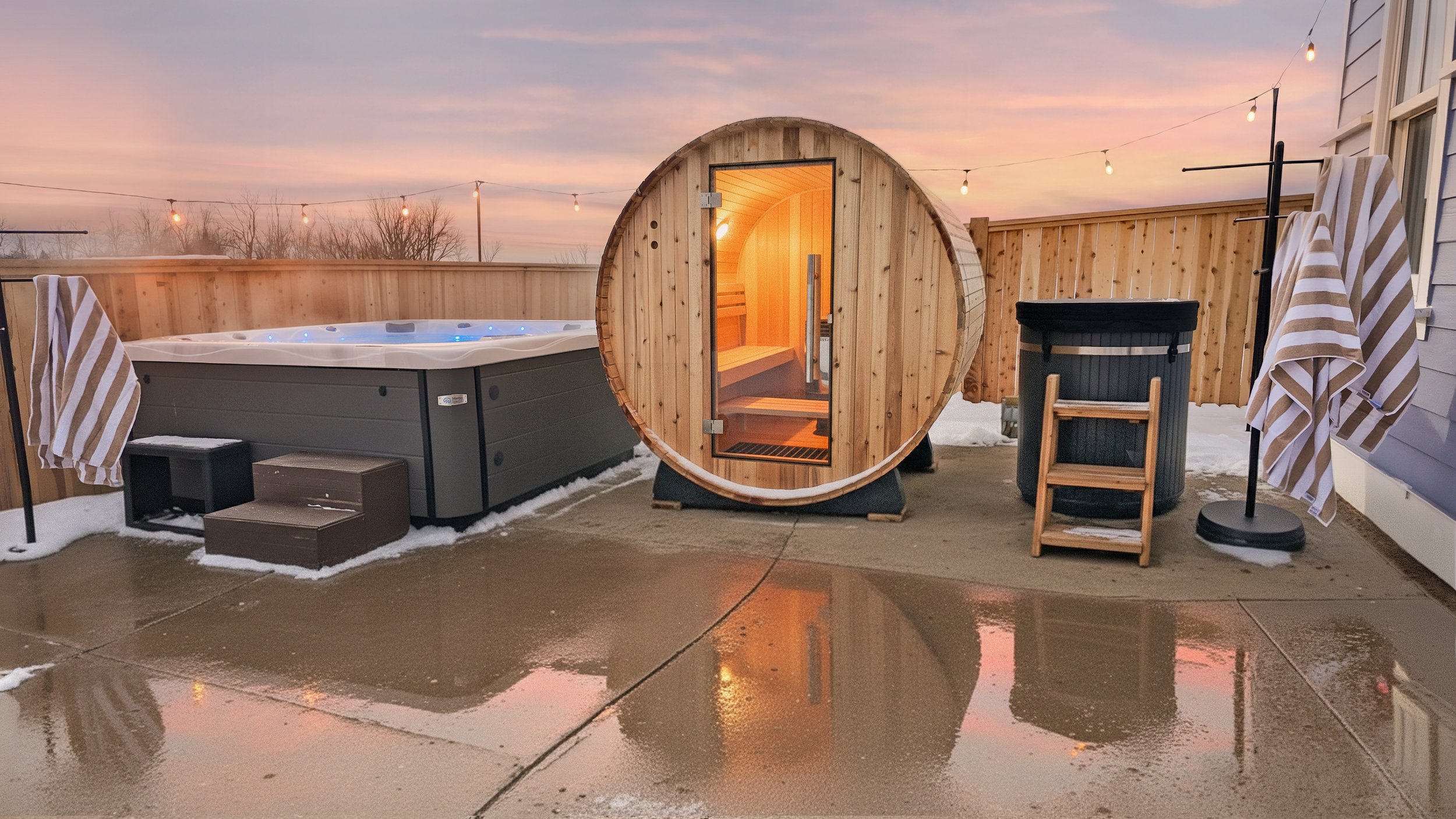 Move seamlessly between the soothing heat of the sauna and the warmth of the hot tub for a deeply restorative, spa-like experience.